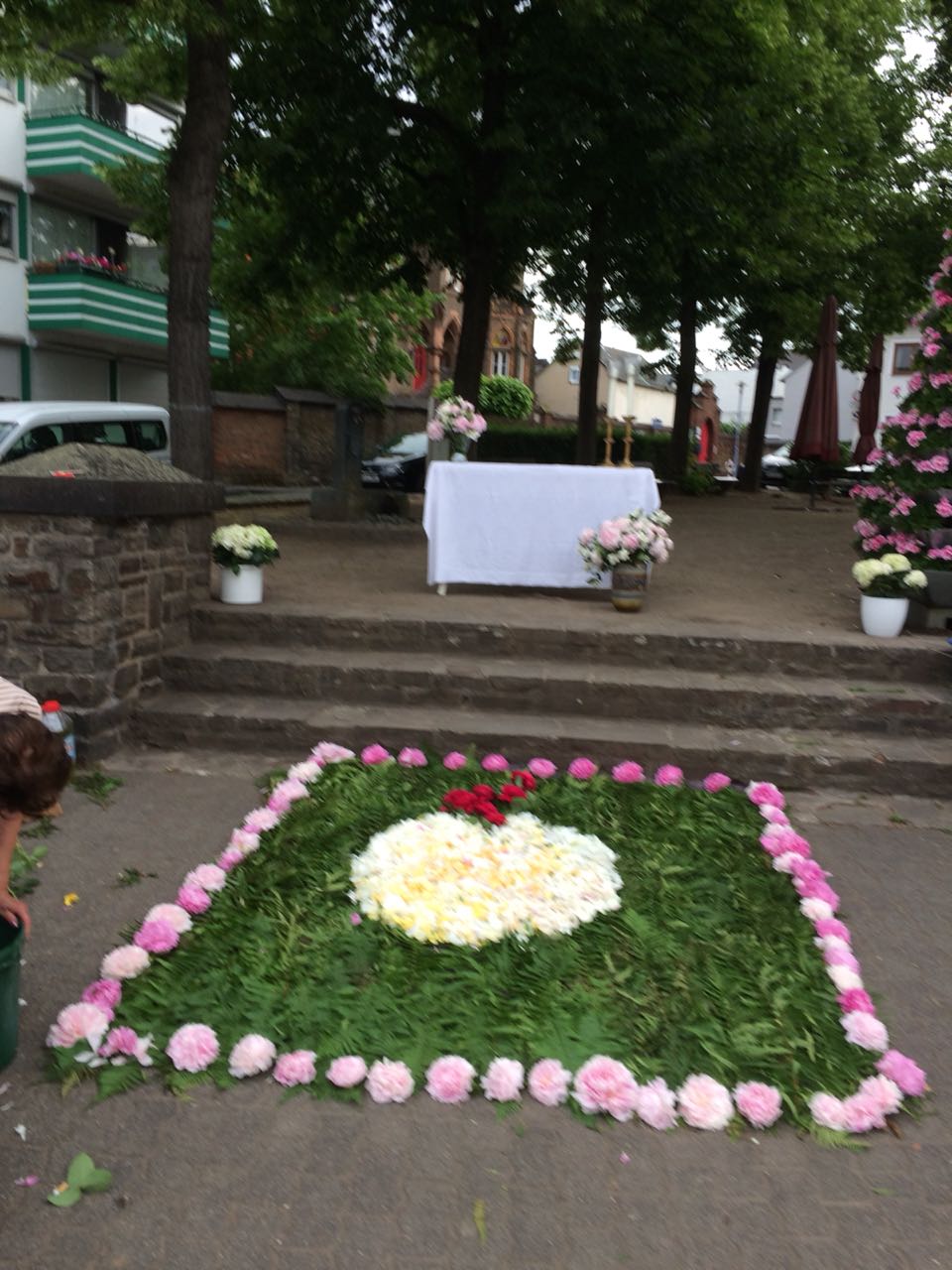 Wir sind im Wechsel mit St. Martin und Heilig Geist zuständig für die Feier Fronleichnam. In Barbara findet sie den Anfang (wenn es nicht in Strömen regnet) vor der Johanneskirche. Von dort aus geht es (hoffentlich) singend durch die Straßen zu den Altären. Die wurden am selben Tag frühmorgens mit Blumen geschmückt. Danke Allen, die mitgeholfen haben!